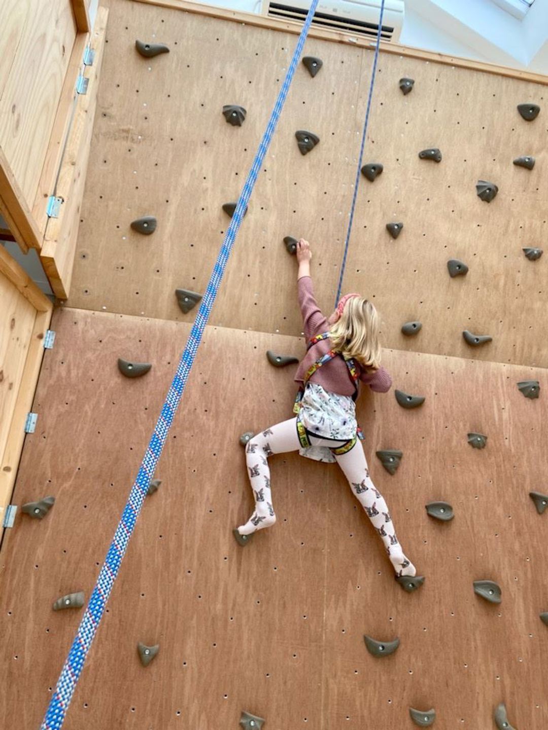 Hver fredag får barna prøve seg på klatreveggen som er i barnehagen. Barna gjør dette gruppevis, og hvert barn får klatre ca. en gang hver måned. I klatreveggen møter barna motoriske utfordringer, og mestringsfølelse.